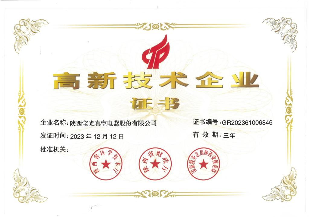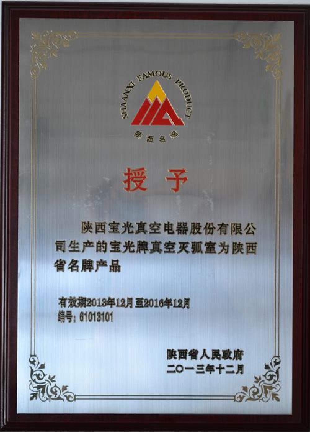 - 寶光牌真空滅弧室被授予陜西省名牌產(chǎn)品稱號