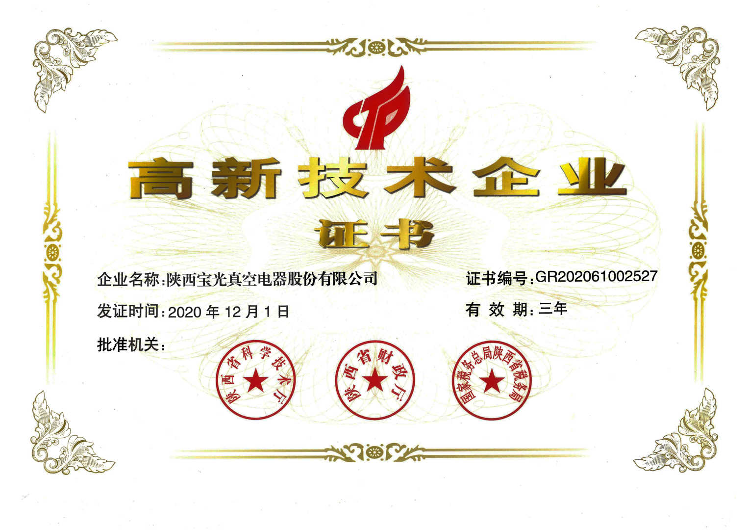 - 高新技術(shù)企業(yè)證書