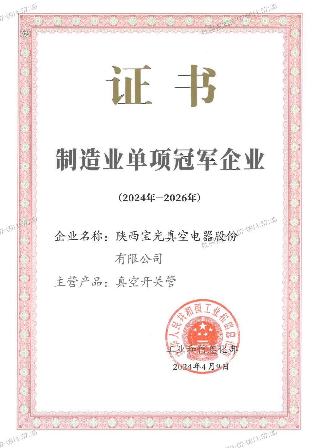 - 2024年榮獲制造業(yè)單項(xiàng)冠軍企業(yè)