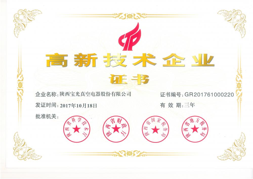 - 公司榮獲高新技術(shù)企業(yè)