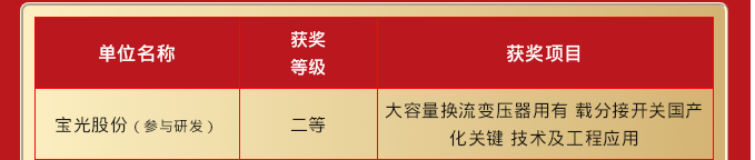 寶光股份獲各類獎項共計2項,參與科技進步獎二等獎1項!獲得科技進步獎三等獎1項