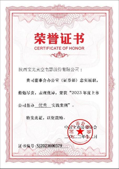 近日,中國上市公司協(xié)會(huì)公布“2023上市公司董辦最佳實(shí)踐”結(jié)果,寶光股份入選中國上市公司協(xié)會(huì)“2023年度上市公司董辦優(yōu)秀實(shí)踐案例”,為陜西八家上市公司載譽(yù)單位之一。