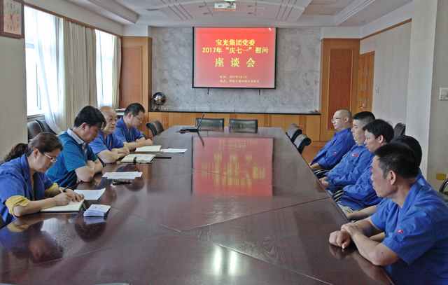 7月3日下午,寶光集團黨委“慶七一”慰問困難黨員座談會在科技大樓4樓大會議室召開。黨委書記雒濤,紀委書記付宗喜,以及黨群工作部工作人員,與6名公司困難黨員進行了座談。