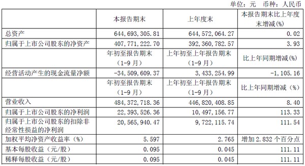 寶光股份2014年三季度主要財(cái)務(wù)指標(biāo)